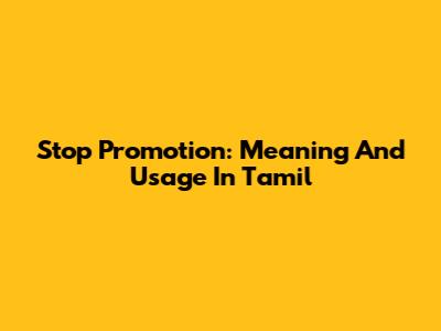 Stop Promotion: Meaning And Usage In Tamil