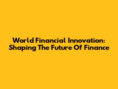 World Financial Innovation: Shaping The Future Of Finance