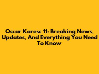 Oscar Karesc 11: Breaking News, Updates, And Everything You Need To Know