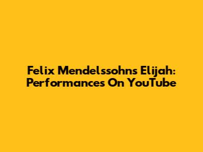 Felix Mendelssohn's Elijah: Performances On YouTube