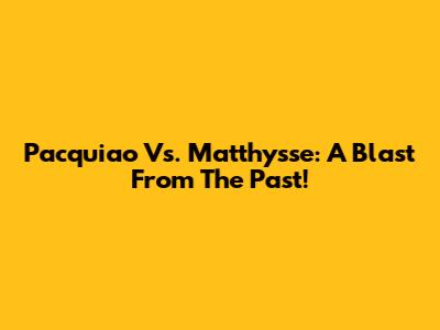 Pacquiao Vs. Matthysse: A Blast From The Past!