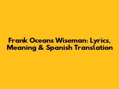 Frank Ocean's 'Wiseman': Lyrics, Meaning & Spanish Translation