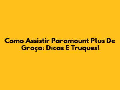 Como Assistir Paramount Plus De Graça: Dicas E Truques!