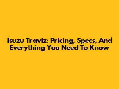 Isuzu Traviz: Pricing, Specs, And Everything You Need To Know