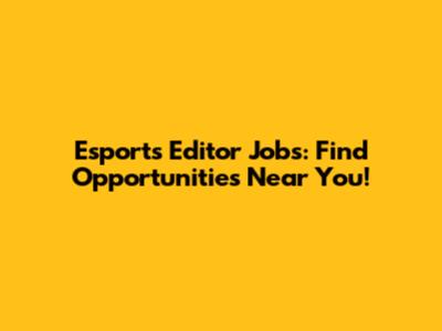 Esports Editor Jobs: Find Opportunities Near You!