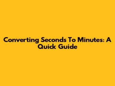 Converting Seconds To Minutes: A Quick Guide