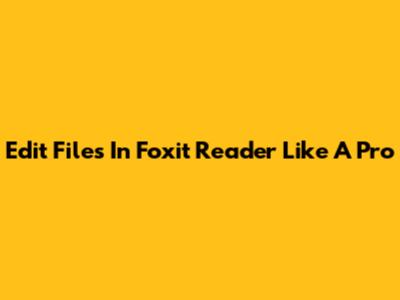 Edit Files In Foxit Reader Like A Pro