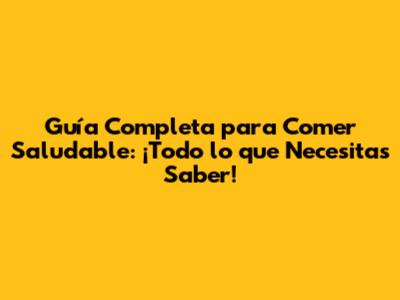 Guía Completa Para Comer Saludable: ¡Todo Lo Que Necesitas Saber!