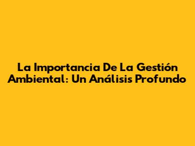 La Importancia De La Gestión Ambiental: Un Análisis Profundo