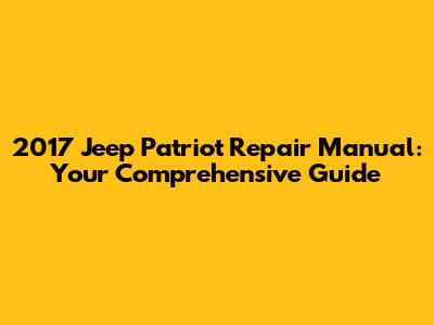 2017 Jeep Patriot Repair Manual: Your Comprehensive Guide