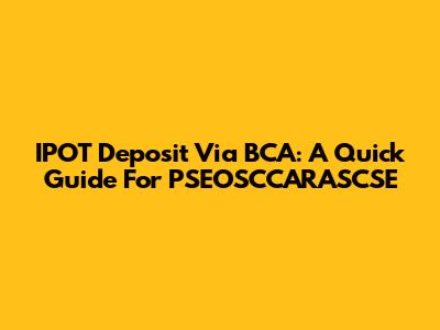 IPOT Deposit Via BCA: A Quick Guide For PSEOSCCARASCSE