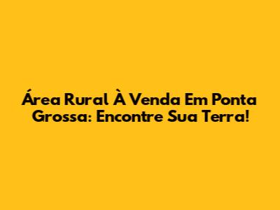 Área Rural À Venda Em Ponta Grossa: Encontre Sua Terra!