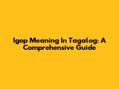 Igop Meaning In Tagalog: A Comprehensive Guide
