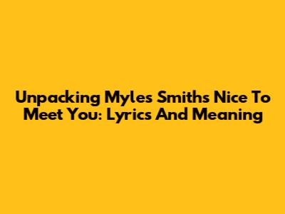 Unpacking Myles Smith's 'Nice To Meet You': Lyrics And Meaning