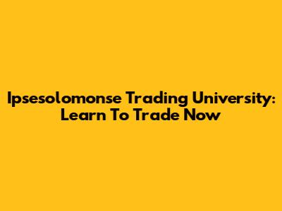 Ipsesolomonse Trading University: Learn To Trade Now