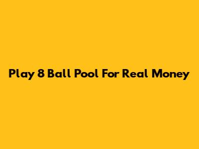 Play 8 Ball Pool For Real Money