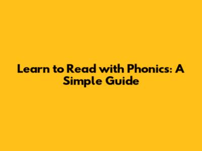 Learn To Read With Phonics: A Simple Guide