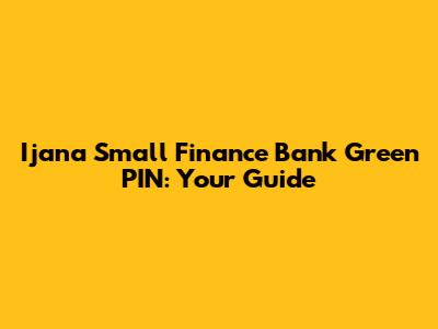 Ijana Small Finance Bank Green PIN: Your Guide