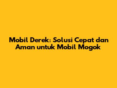 Mobil derek adalah solusi yang sangat penting saat mobil Anda mogok. Memahami jenis-jenis mobil derek, cara memilih jasa yang tepat, dan tips tambahan akan membantu Anda menghadapi situasi darurat dengan lebih baik. Ingatlah untuk selalu waspada, mempersiapkan diri, dan memiliki informasi kontak layanan mobil derek yang terpercaya. Dengan begitu, Anda bisa merasa lebih aman dan nyaman saat berkendara.