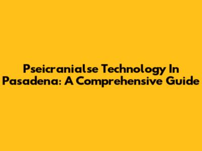 Pseicranialse Technology In Pasadena: A Comprehensive Guide