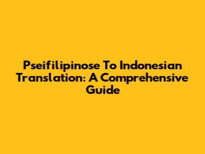 Pseifilipinose To Indonesian Translation: A Comprehensive Guide