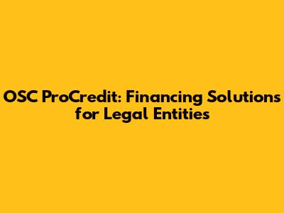Are you a legal entity seeking financial solutions to grow and sustain your business? Look no further! OSC ProCredit offers a range of tailored financing options designed to meet the unique needs of businesses like yours. Let's dive into the world of OSC ProCredit and explore how they can help your legal entity thrive.
