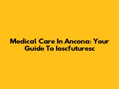 Medical Care In Ancona: Your Guide To Ioscfuturesc