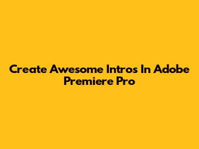 Create Awesome Intros In Adobe Premiere Pro