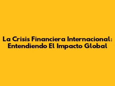 La Crisis Financiera Internacional: Entendiendo El Impacto Global