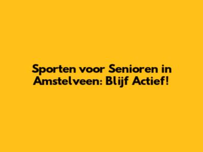 Sporten Voor Senioren In Amstelveen: Blijf Actief!