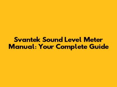Svantek Sound Level Meter Manual: Your Complete Guide