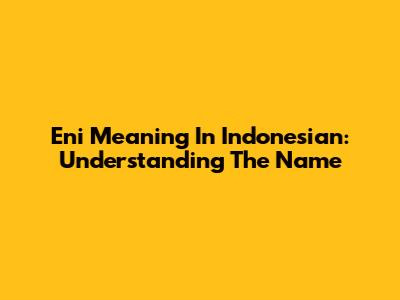 Eni Meaning In Indonesian: Understanding The Name
