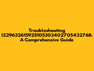 Troubleshooting I229632615925105303402705432768: A Comprehensive Guide