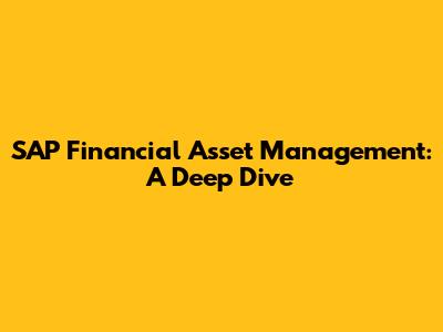 SAP Financial Asset Management: A Deep Dive