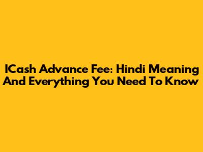 ICash Advance Fee: Hindi Meaning And Everything You Need To Know