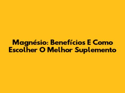 Magnésio: Benefícios E Como Escolher O Melhor Suplemento